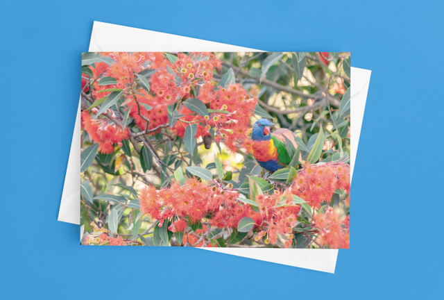 Rainbow Lorikeet in a Western Australian flowering gum Christmas Card "Seasons Tweetings"